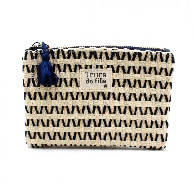 Pochette tressée avec message “Trucs de fille”, déclinée en plusieurs coloris.