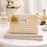 Cette pochette tressée au design naturel et moderne est un essentiel des collections d’accessoires de mode. Son message “Trucs de fille” apporte une touche ludique et tendance, particulièrement appréciée en boutique.