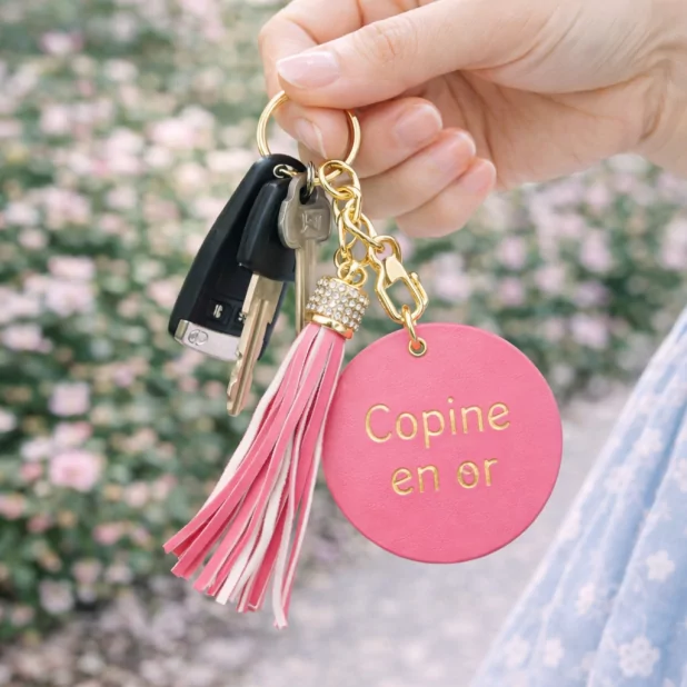 Porte clefs avec un message copine en or