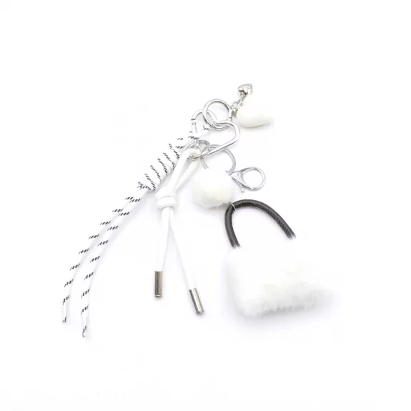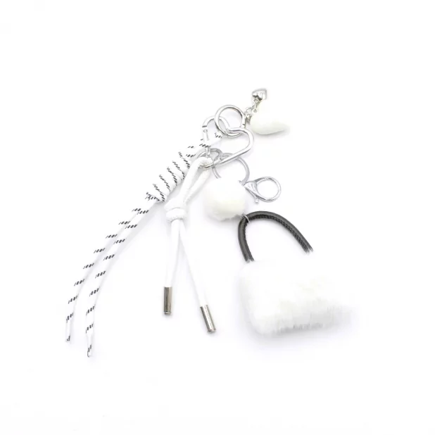 Porte clefs bijoux de sacs avec un sac à main blanc fausse fourrure