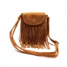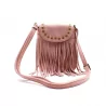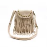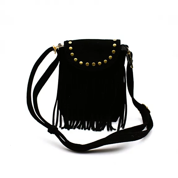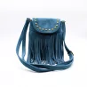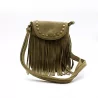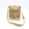 Petit sac bandoulière bohème avec franges et clous dorés. Format compact 20 x 15 cm, idéal pour un look tendance western ou festival.