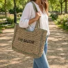 Craquez pour ce grand sac cabas en papier avec inscription "RIVE GAUCHE", une pièce incontournable au style chic et naturel.