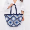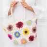 Panier en crochet avec motifs fleurs colorées et pochon intérieur. Un modèle bohème tendance, parfait pour l’été.