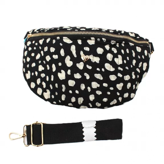 Son tissu matelassé lui apporte une belle tenue et un toucher agréable, tandis que ses imprimés intemporels (pois ou léopard revisité) donnent du caractère à votre tenue. Facile à porter en bandoulière ou à la taille grâce à sa sangle réglable, il s’adapte à toutes les morphologies et styles.