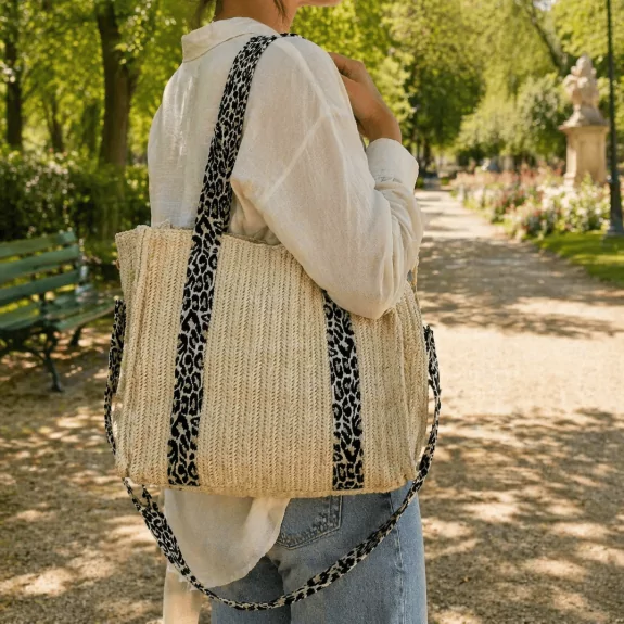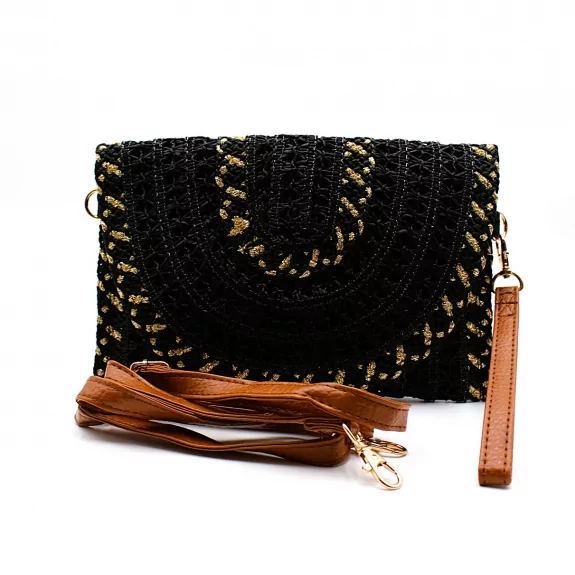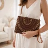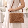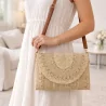 Pochette élégante en papier tressé au style bohème chic, avec bandoulière amovible. Idéale pour une tenue estivale tendance. Disponible en plusieurs coloris.